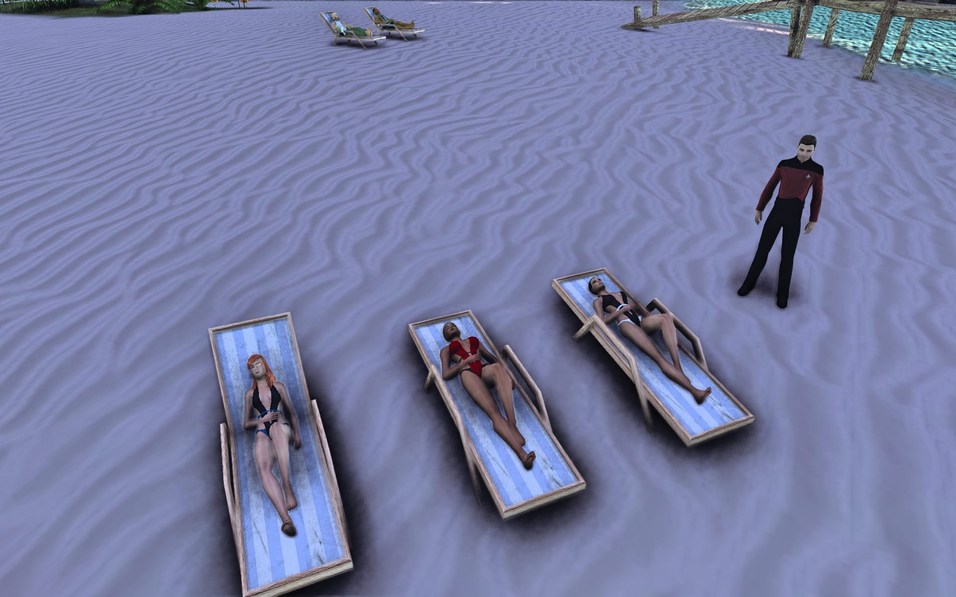 Drei Beach-Beautys (Nici, McAllister und Jill) plus Gaffer (Riker).