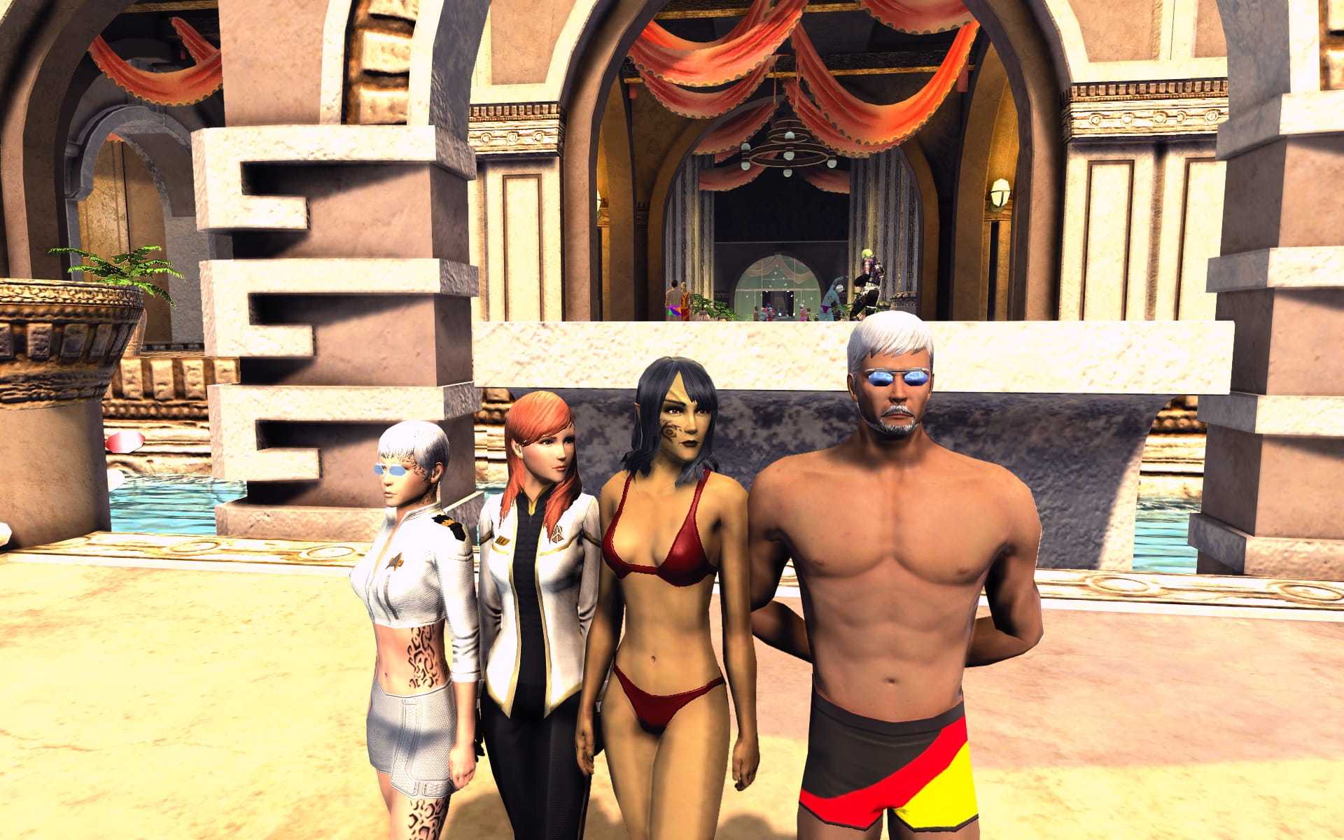 Von vorne nach hinten: Vharinna, Epohh, Hor'ghan, Nici, Two, GermanFighter, Vogel von GermanFighter.